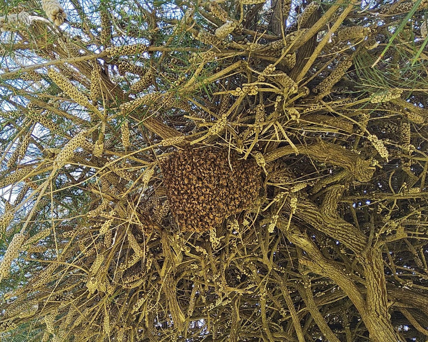 Please avoid the area whilst the bees are hanging around, they should move on within the next couple of days.