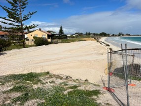 - In September, sand renourishment works were completed in front of the Lancelin Sands Hotel as a short-term response to erosion in that area. To source this material, a shallow layer of sand (approximately 250mm) was scraped from a section of beach slightly further north of the affected area.