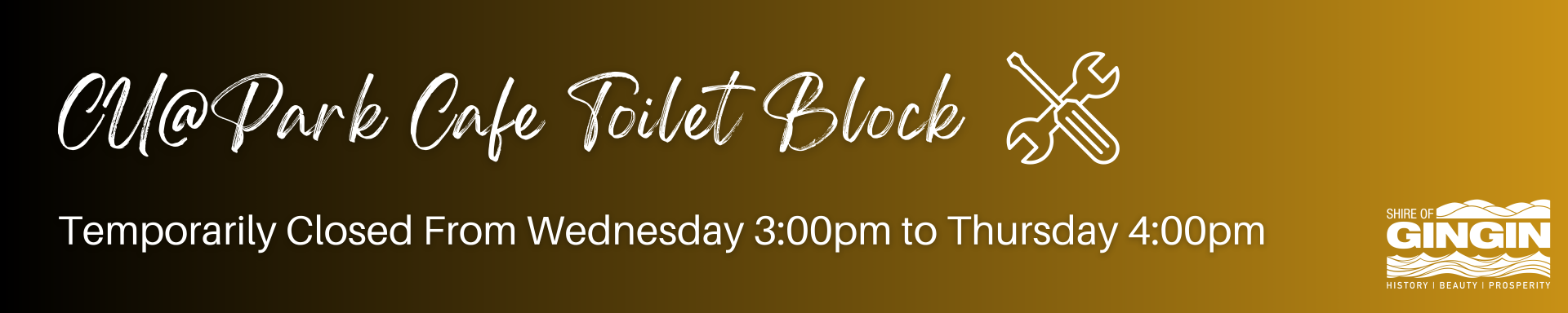 Please be advised, the toilet block located near CU@Park Café will be temporarily closed from Today, Wednesday 1 October at 3:00pm through to tomorrow Thursday 2 October at 4:00pm due to maintenance issues and electrical upgrade works.