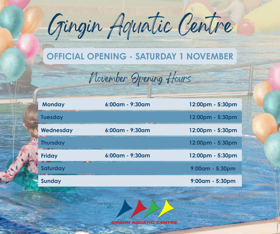 Morning swimmers, you'll be pleased to know that we will be open for your morning swims from 6:00am - 9:30am Monday, Wednesday and Friday commencing Monday 3 November!