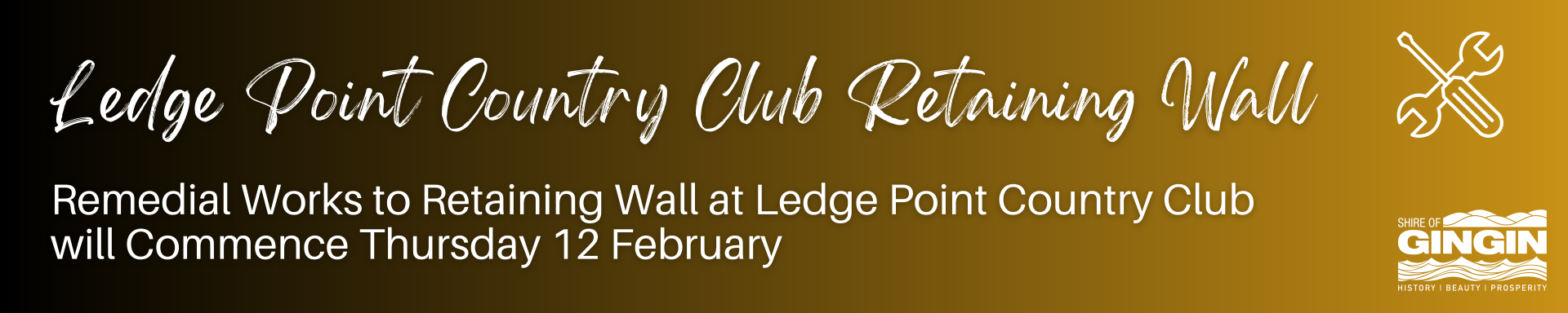 Please be advised that remedial works to the retaining wall at the Ledge Point Country Club will commence on Thursday 12 February. These works are part of the Shire’s Capital Works Program.