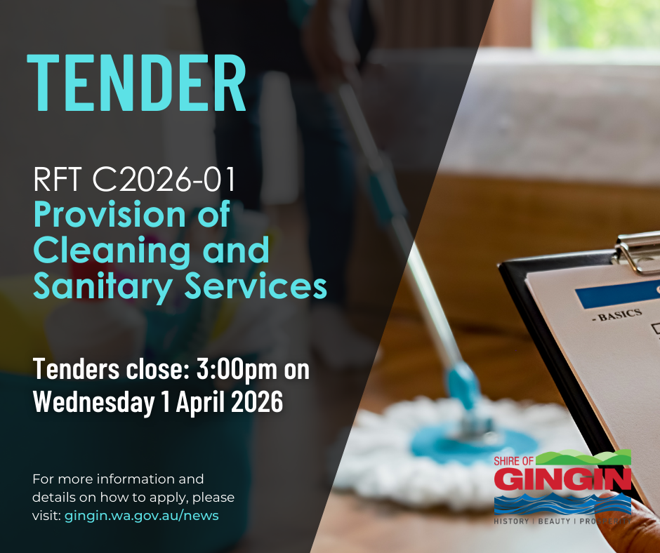 All tenders must be clearly marked CONFIDENTIAL – RFT C2026-01 PROVISION OF CLEANING AND SANITARY SERVICES and either placed in the tender box at the Shire’s Administration Centre, 7 Brockman St, Gingin or posted to the CEO, Shire of Gingin, PO Box 510, Gingin WA 6503 by the due date and time. Emailed or faxed tenders will not be accepted.