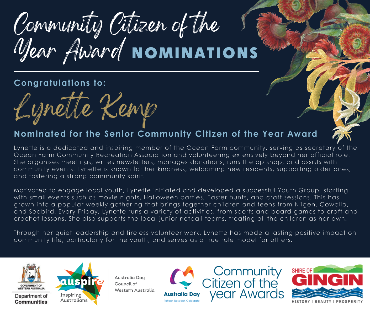 Year Awards give local governments around Western Australia the opportunity to acknowledge the contribution and celebrate engagement of people within the community.