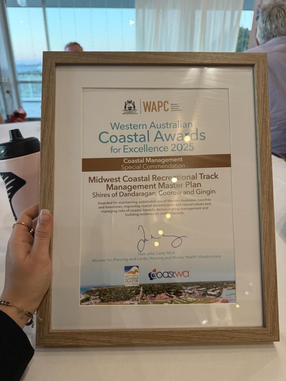 The Shire sincerely thanks the Department of Planning, Lands and Heritage, CoastWA, and the judging panel for the award, and extends its gratitude to the unknown individual who nominated the CRTMMP for consideration.