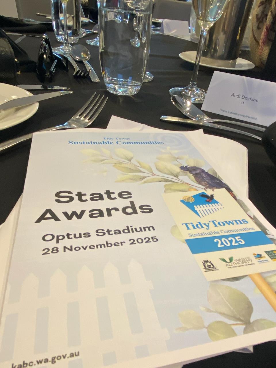 On Friday 28 November, Shire President Cr Linda Balcombe, CEO Scott Wildgoose, and Coordinator Community Development and Services Andi Dackins attended the 2025 Tidy Towns award ceremony after being named a finalist for the award category: Community Action and Wellbeing. This nomination was a result of the YMe! YNot? Connecting Youth Expo which took place in April this year.