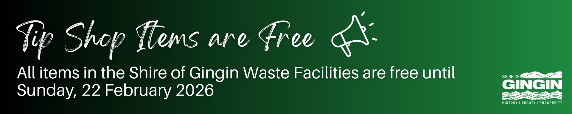All items in the Tip Shops at the Gingin, Lancelin and Seabird Waste Facilities are now FREE until Sunday, 22 February 2026.