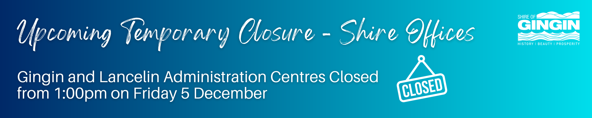 Upcoming Temporary Closure - Gingin and Lancelin Shire Offices