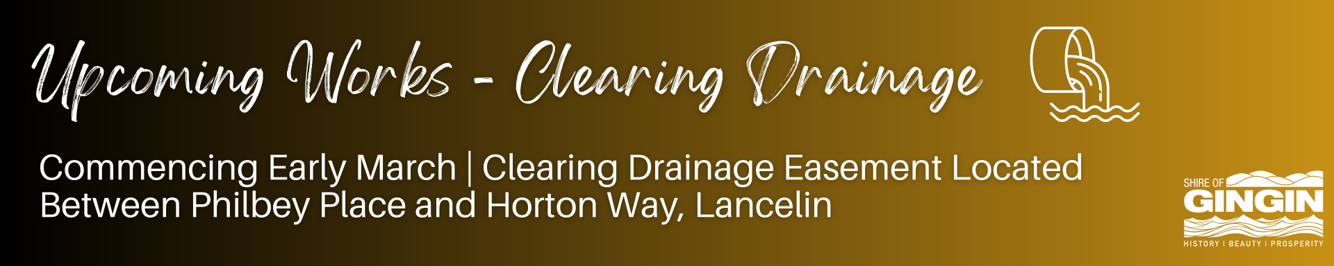 Please be advised, in early March we will be commencing works to clear out the drainage easement located between Philbey Place and Horton Way in Lancelin.